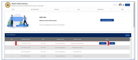 Step 9: Your appointment for property registration is now booked on the Kaveri Online Services portal. Your application status will be Application Submitted Online.