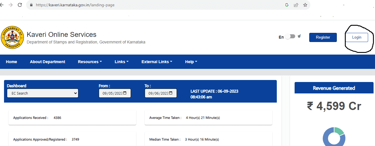 Step 2: Registered users can use their login ID, password and captcha to log into the official Kaveri 2.0 portal.